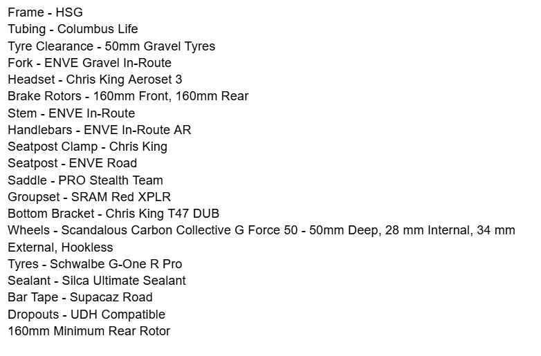 The HSG Red XPLR is our top-tier SRAM build, using the frame’s UDH design for exceptional shifting, durability, and the latest ergonomics from SRAM’s lightest gravel groupset.